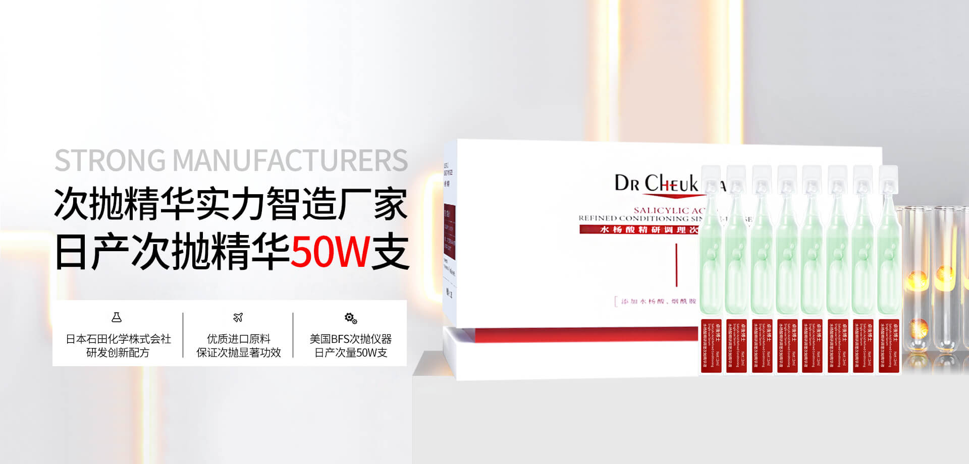 中科利美集團(tuán)生產(chǎn)基地位于廣東肇慶,占地面積達(dá)50000平方米,廠房嚴(yán)格按歐盟GMPC標(biāo)準(zhǔn)設(shè)計(jì),擁有10萬級無菌生產(chǎn)車間、現(xiàn)代化的研發(fā)中心、高端的生產(chǎn)設(shè)備,自動(dòng)化的生產(chǎn)流水線,先進(jìn)的生產(chǎn)工藝,并以卓越的品質(zhì)通過GMPC、ISO9001、ISO14001、ISO22716等國際質(zhì)量管理體系認(rèn)證。